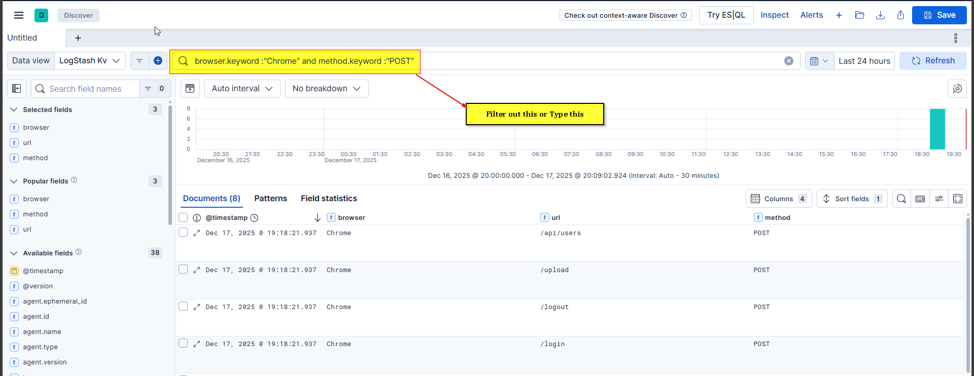 - Test query in Discover first