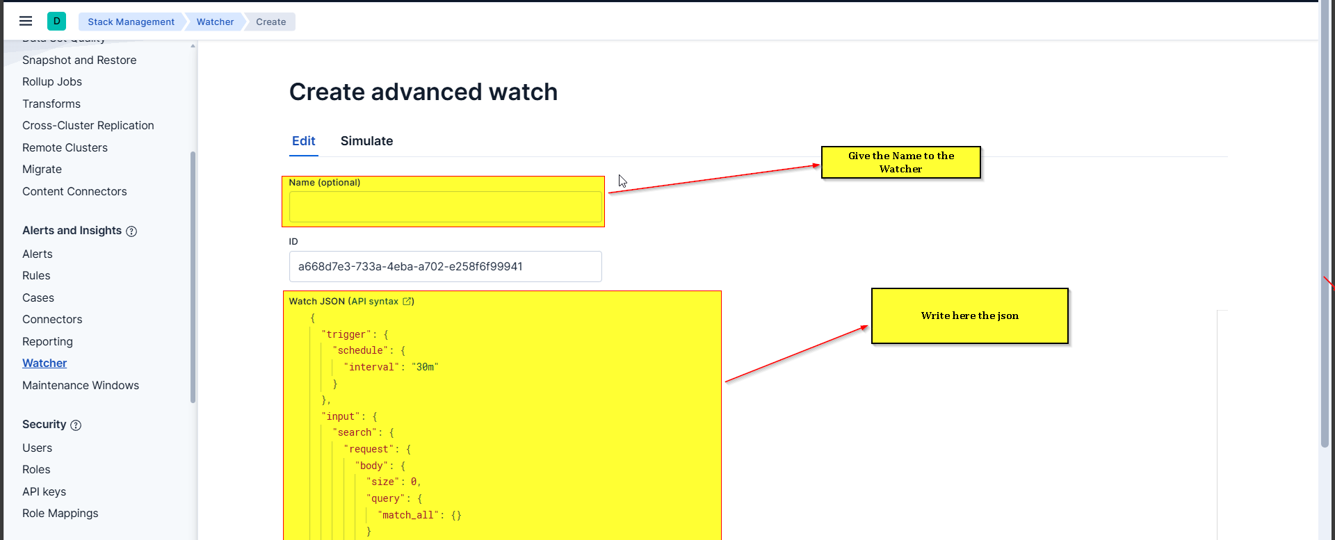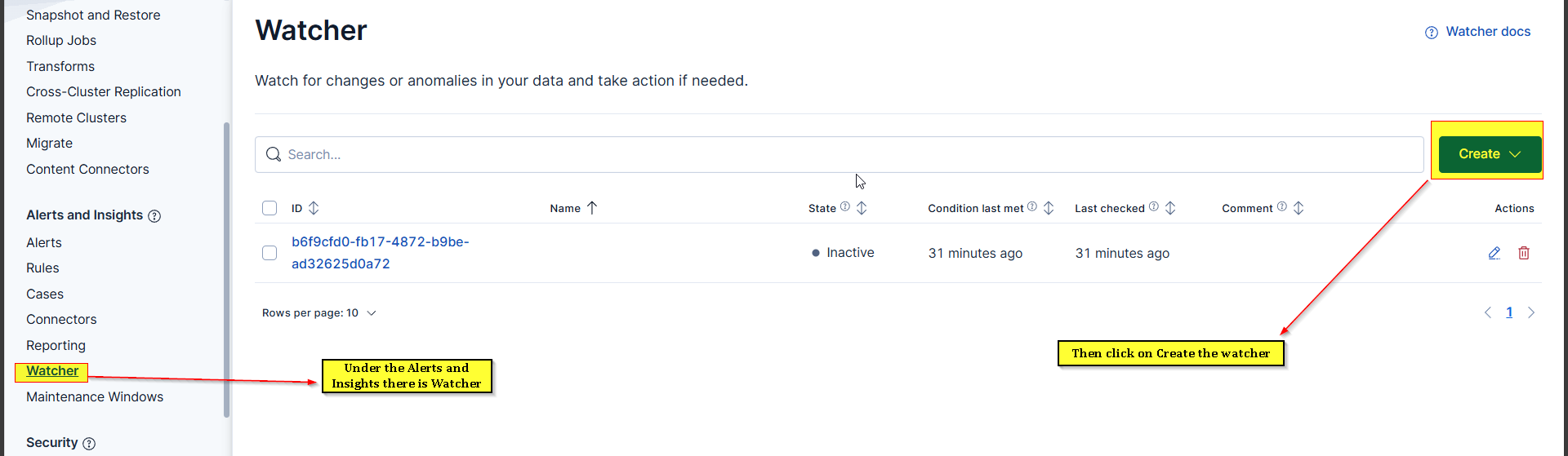 - Click on watcher ID