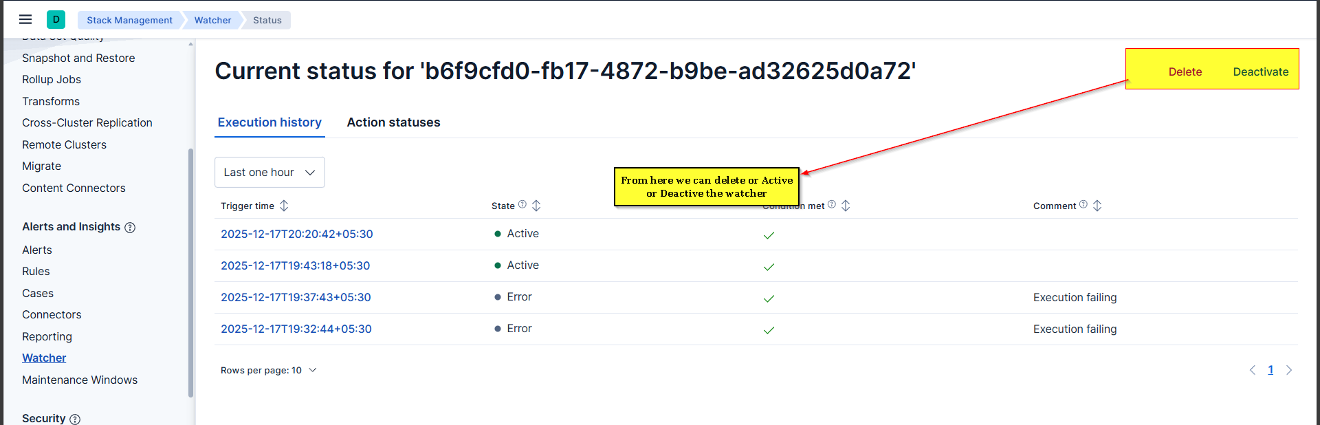- Check watcher execution history
